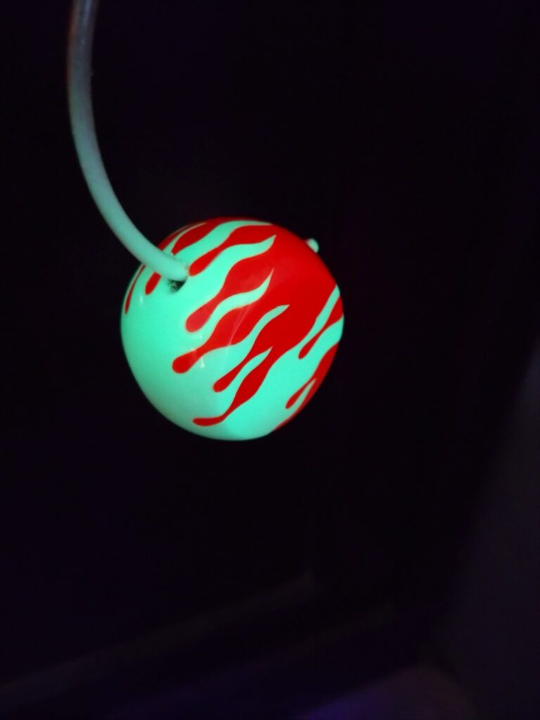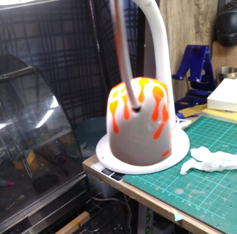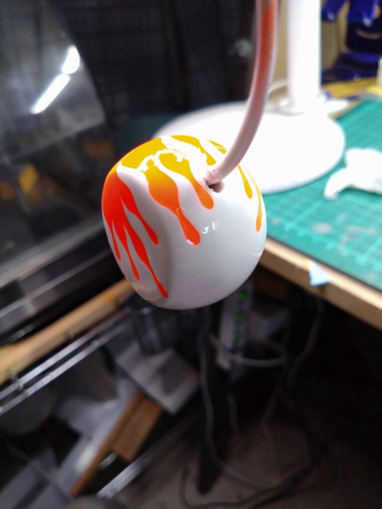 そして、せっかくの機会なので、ついでに今回が初挑戦となる鯛ラバヘッドにも、このファイヤー塗装を施してみました!