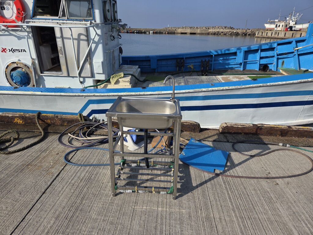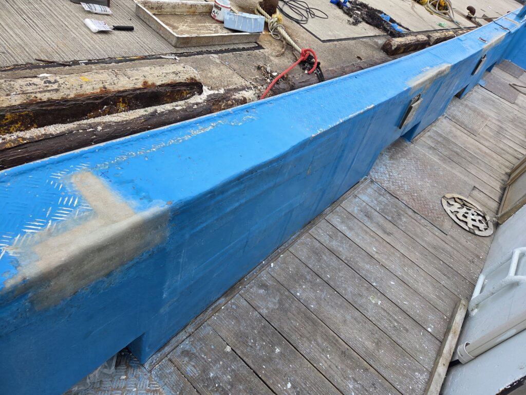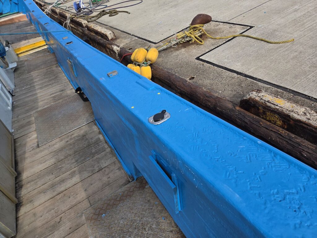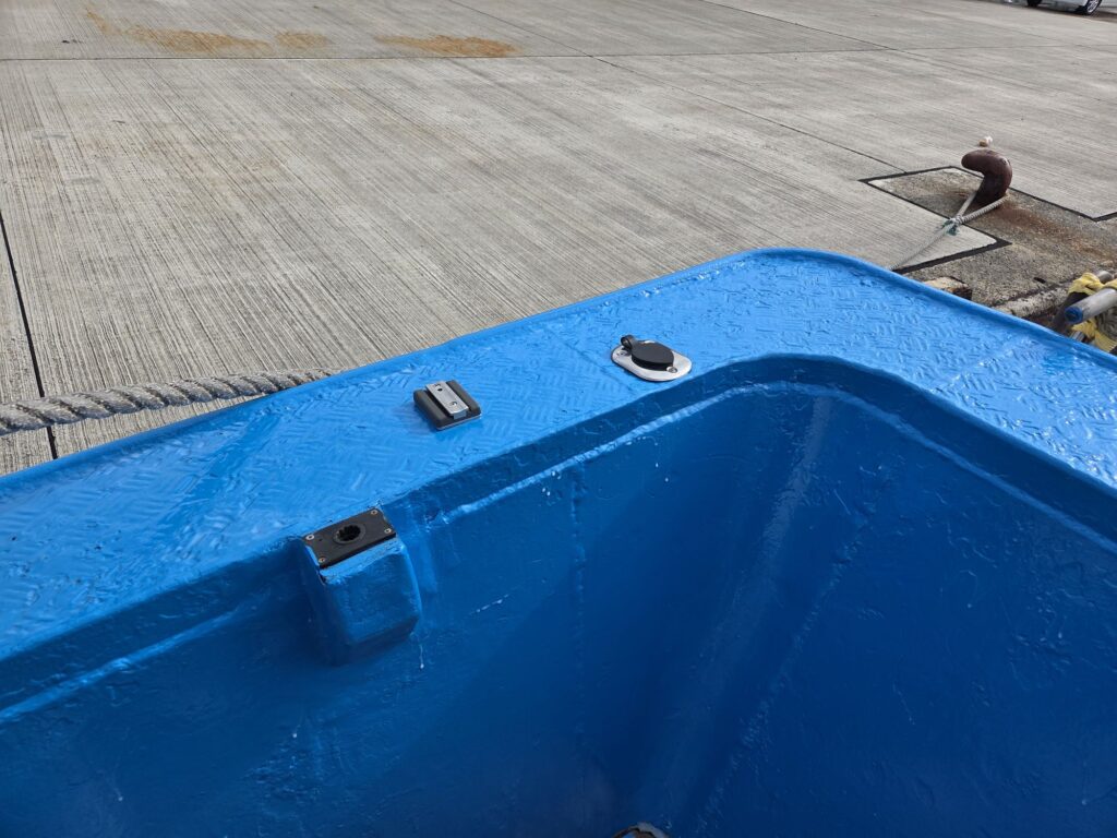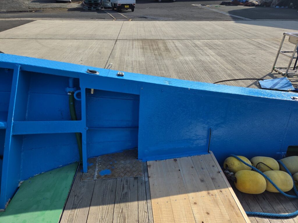 しばらくの間は船に乗る時には気をつけて乗ってください、ペンキが新しいと滑ります。