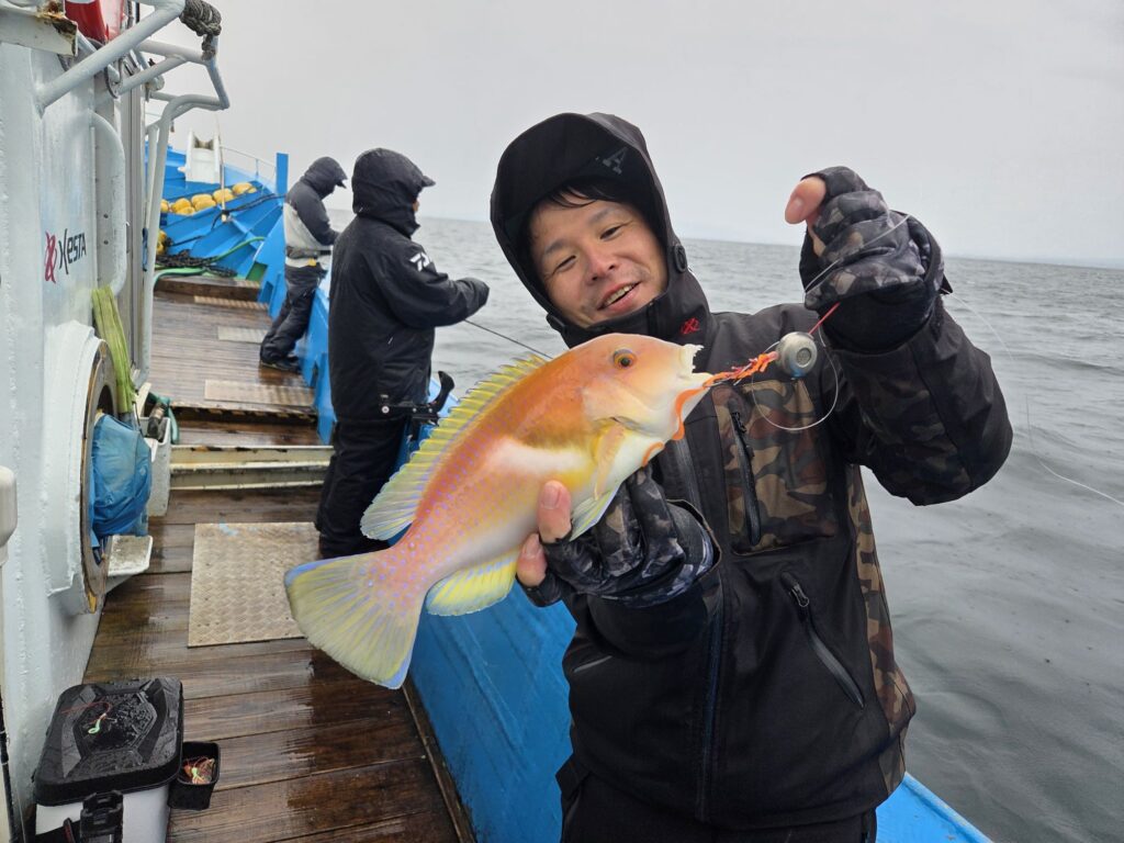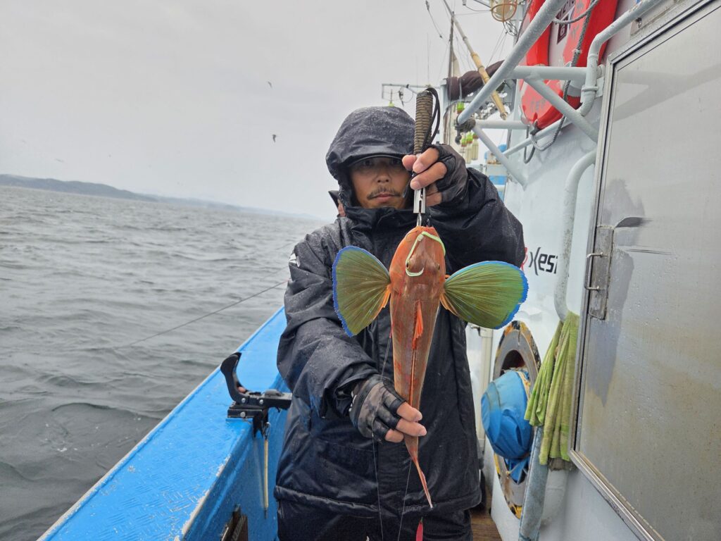 アオハタにカサゴにイトヨリと、いつもの魚も釣れてますが、このあたりから雨が降って来たので写真は少なめ。