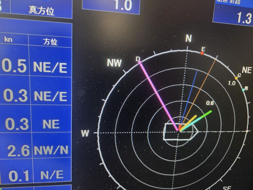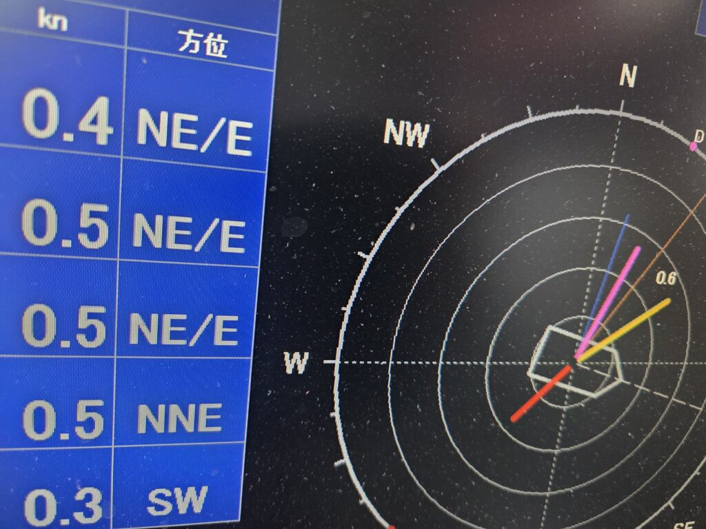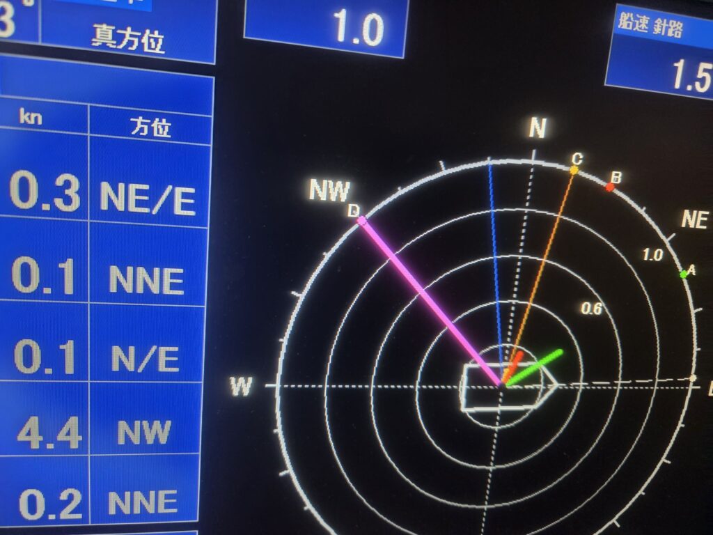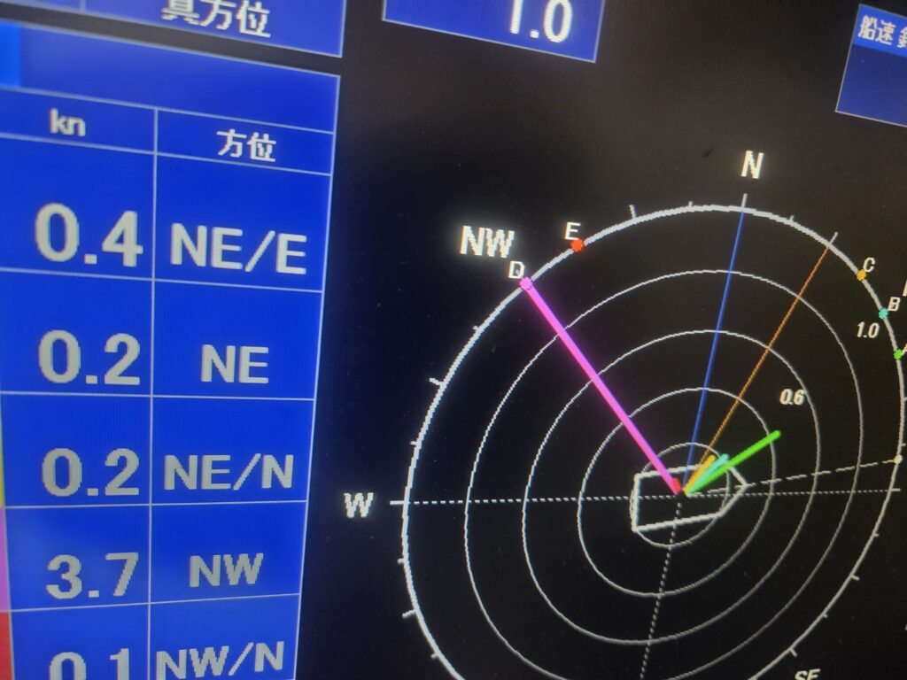朝日も出てきたのでもう一回潮流計見てみましょう。