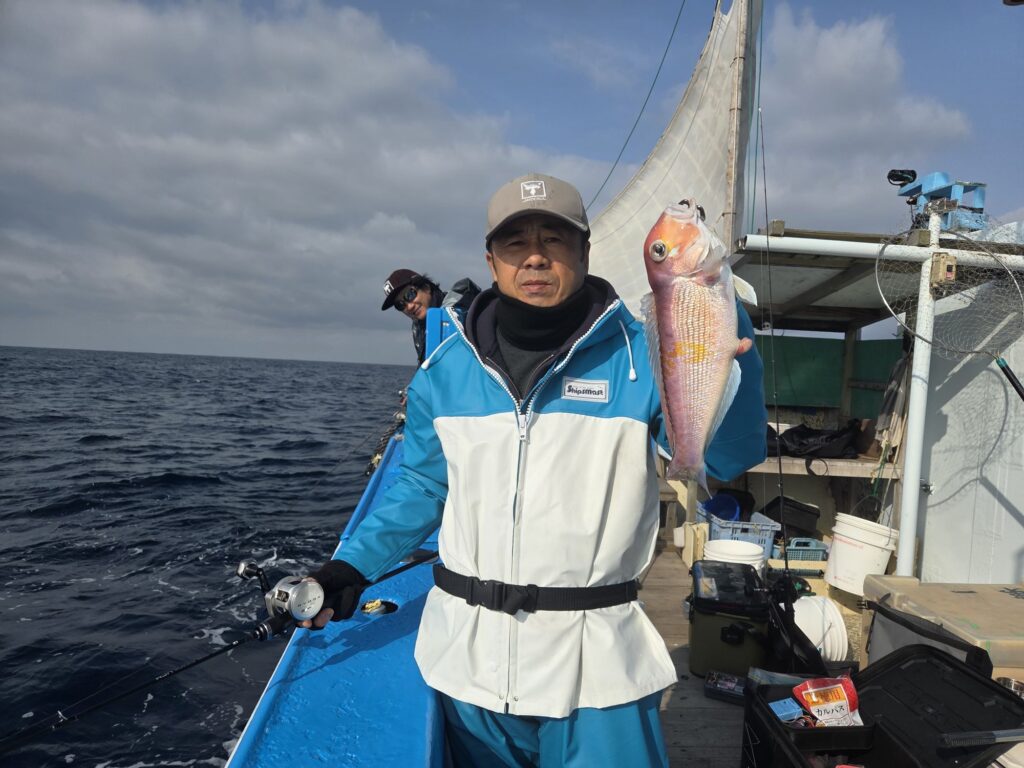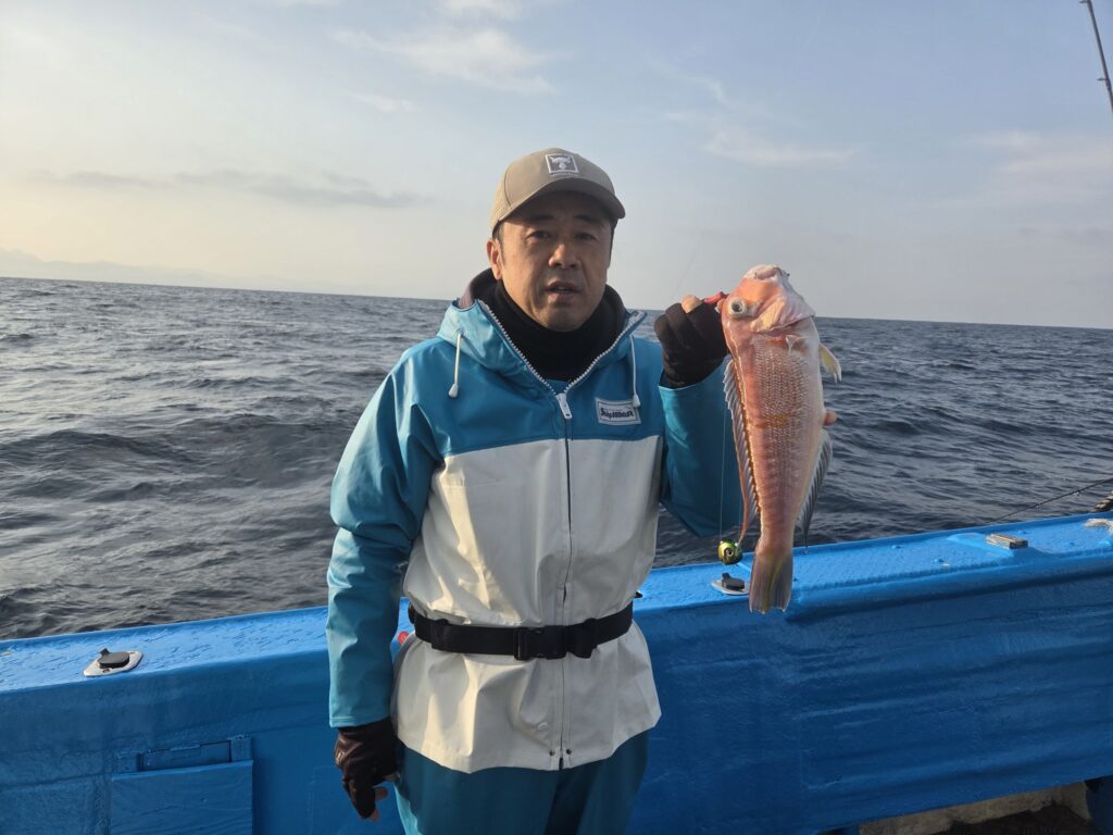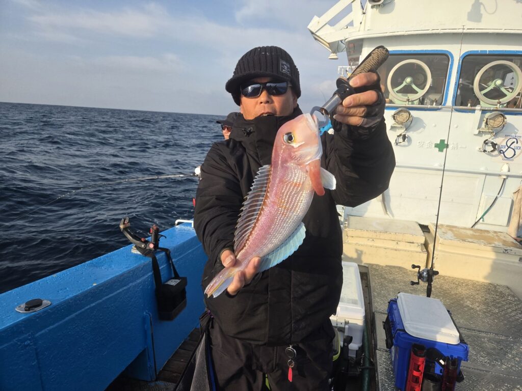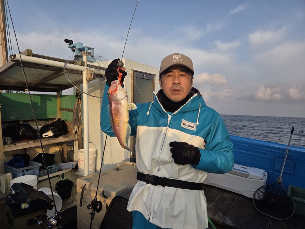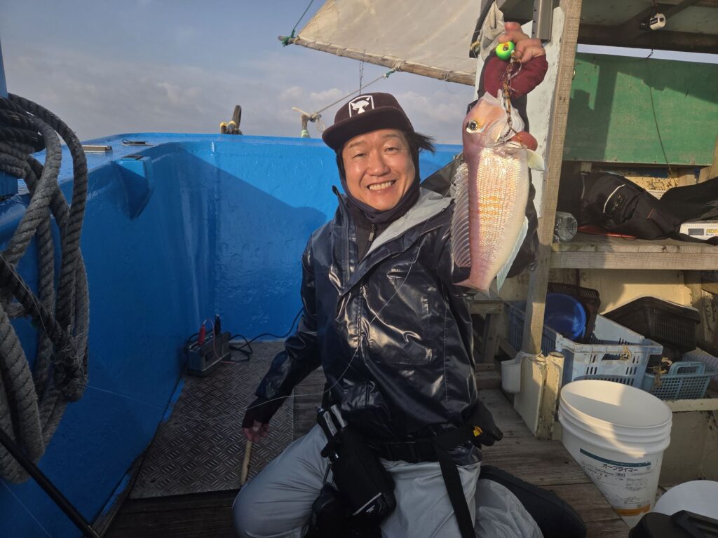 昨日マダイを釣った船長もちょっと竿を出したくなったそうで、船長変わるからやっておいでよって言ったら一発でアマダイ釣ってました。