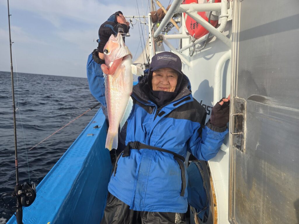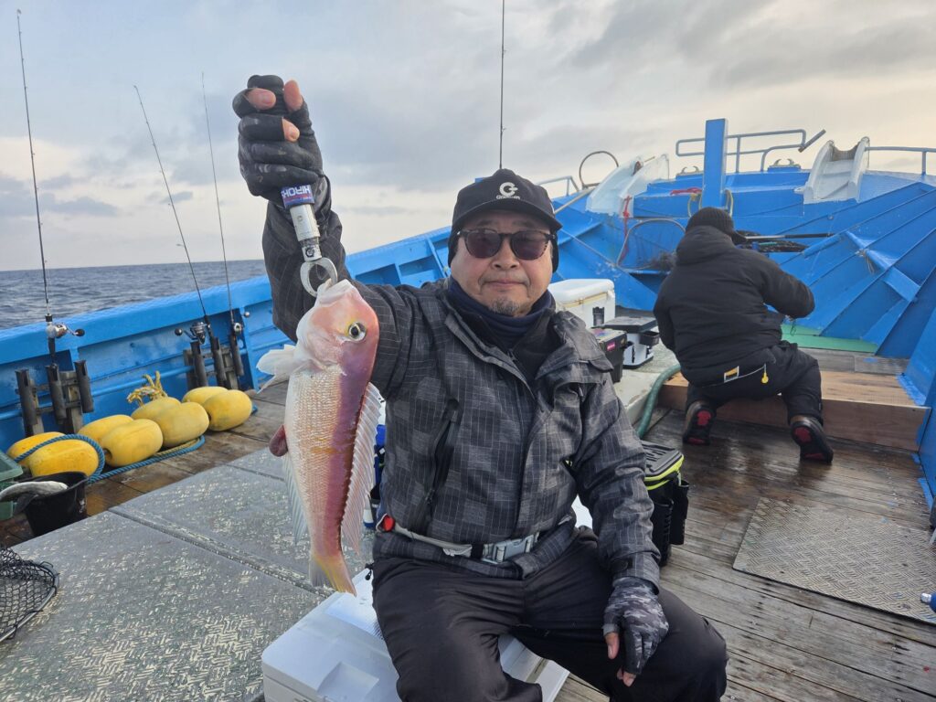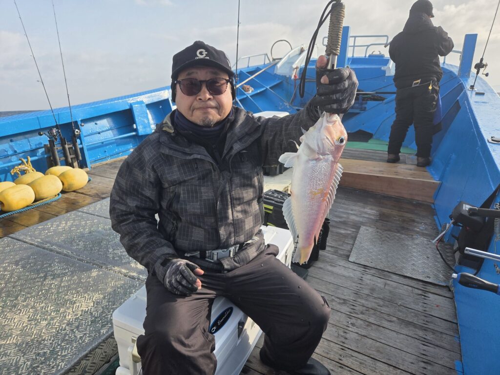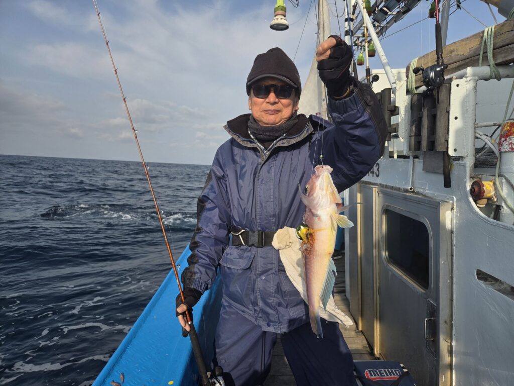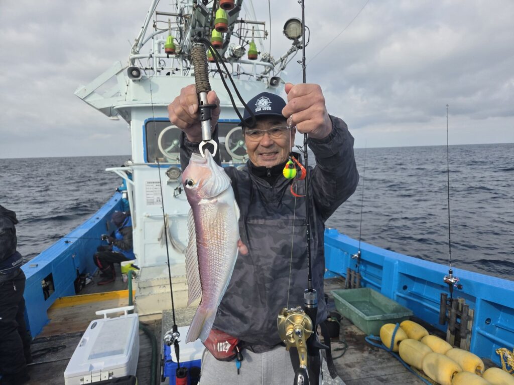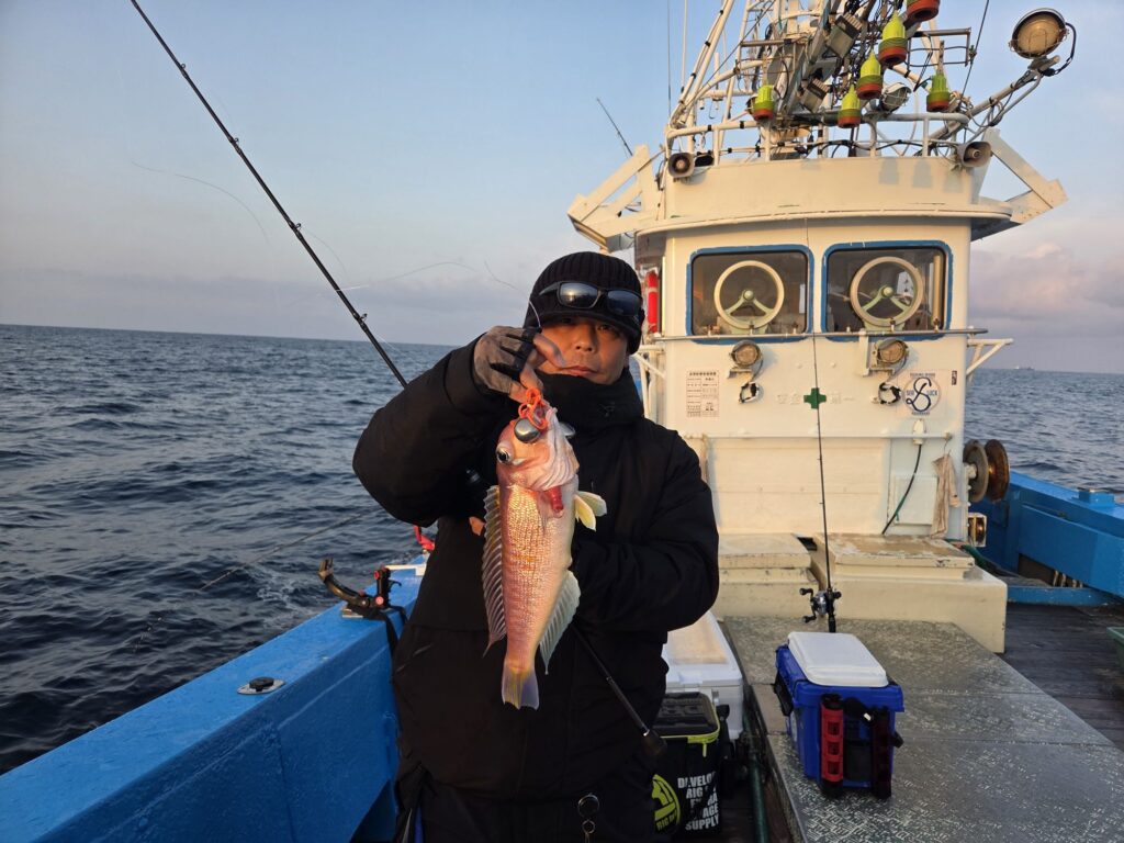 昨日マダイを釣った船長もちょっと竿を出したくなったそうで、船長変わるからやっておいでよって言ったら一発でアマダイ釣ってました。