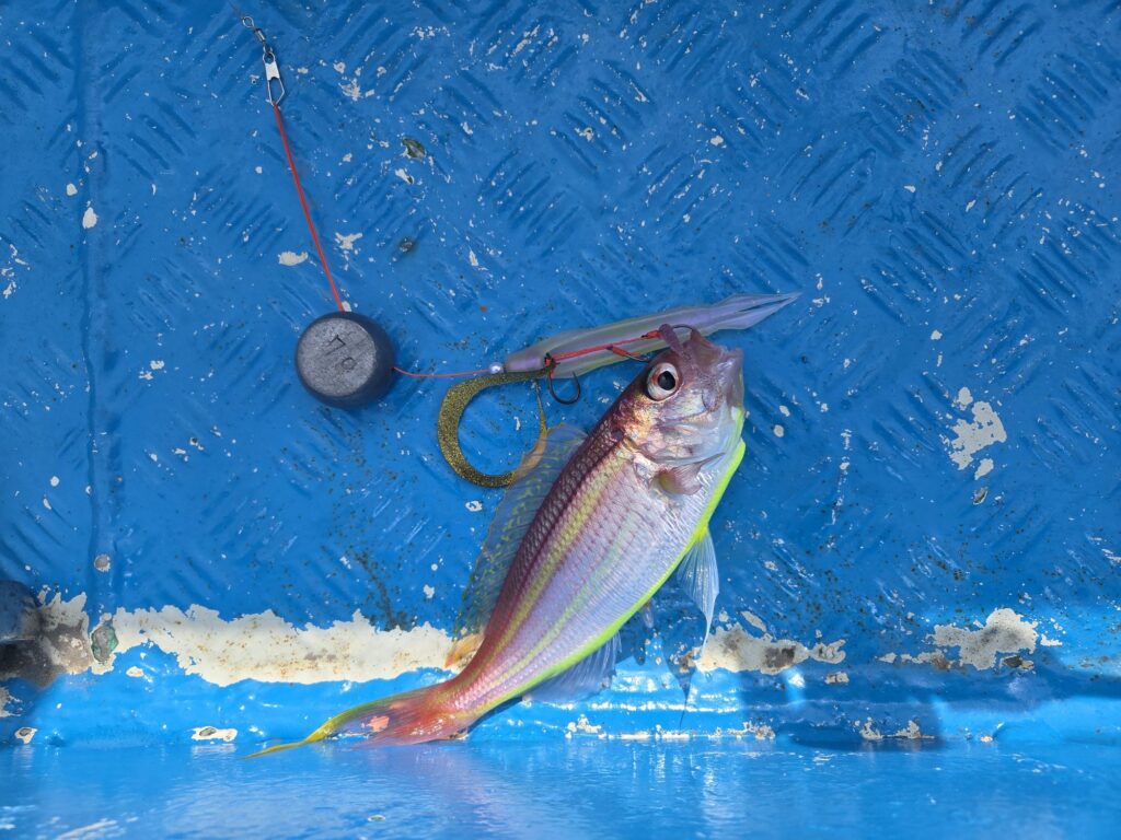 あまりに釣れないので俺も竿を出してみたらこんな小さいイトヨリが💧