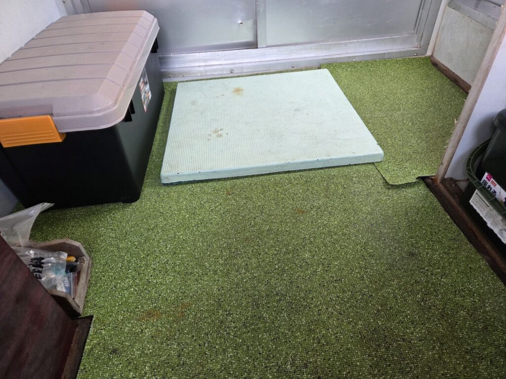マット剥がしてデッキブラシでゴシゴシして