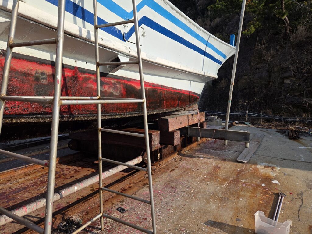 ペンキ塗って船底だけは綺麗になりました。
