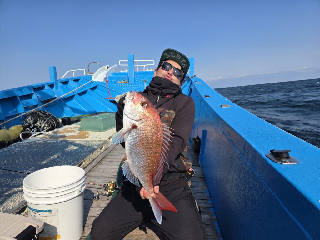 悠斗君がマダイゲット!